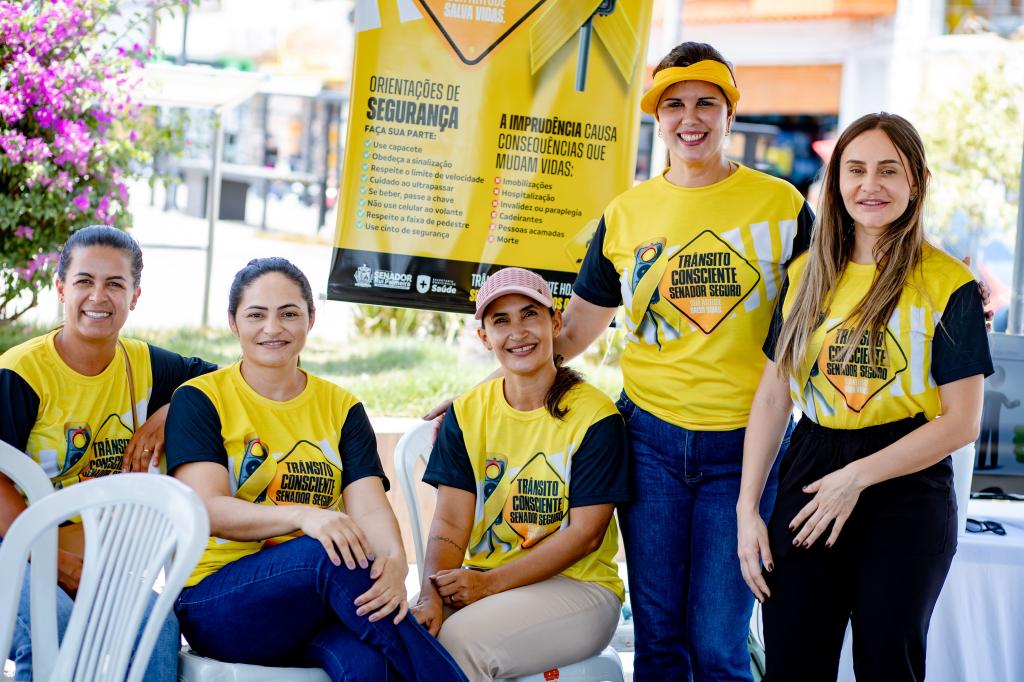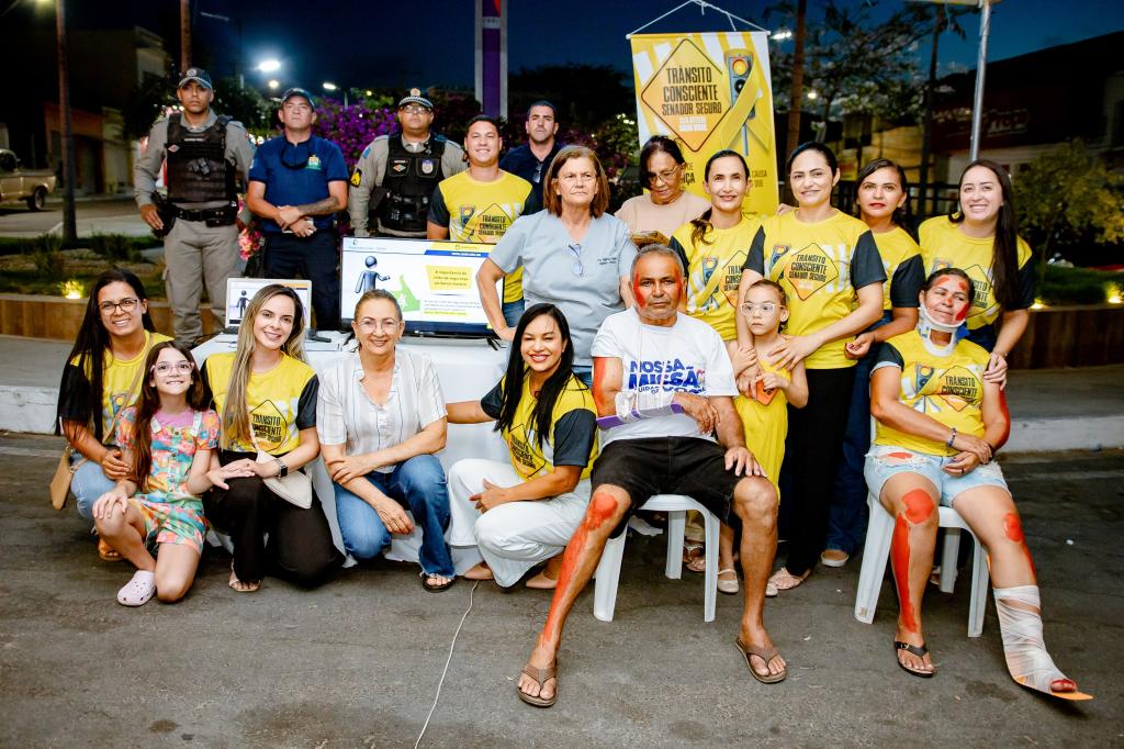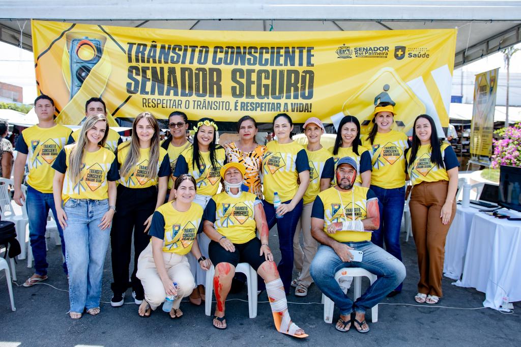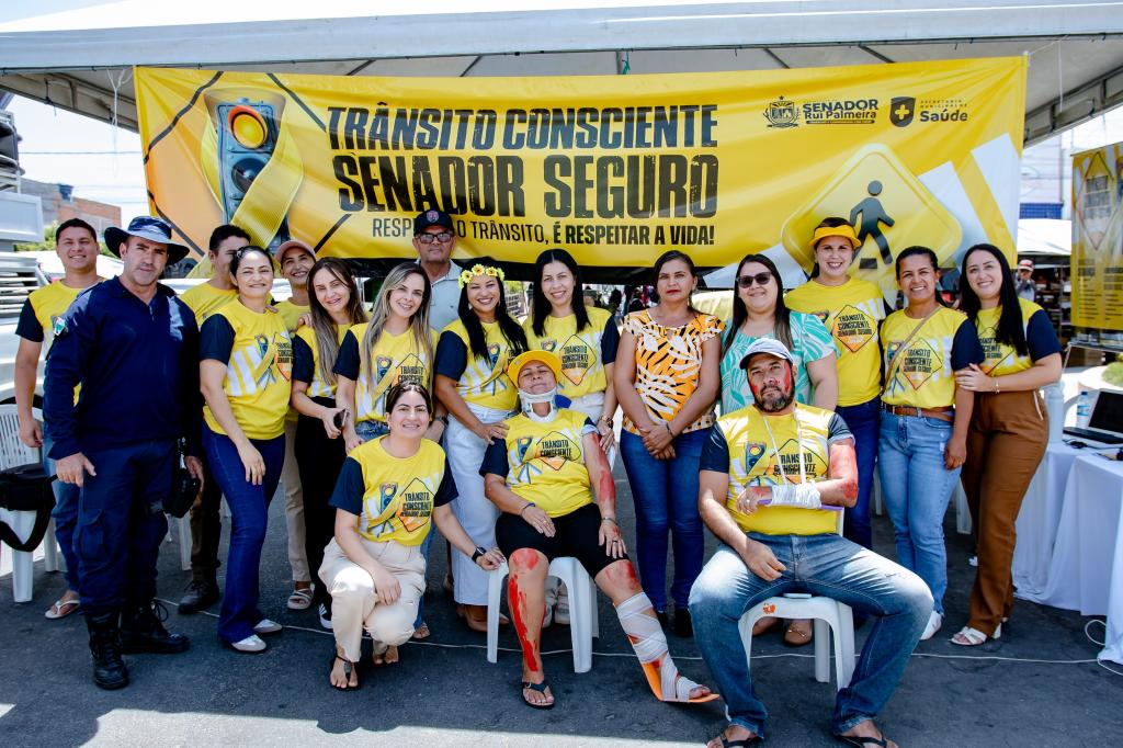 A equipe da Secretaria Municipal de Saúde realizou, nesta quarta-feira, no centro da cidade e durante a feira livre, a ação “Trânsito Consciente, Senador Seguro”, com palestra educativa e blitz de conscientização.