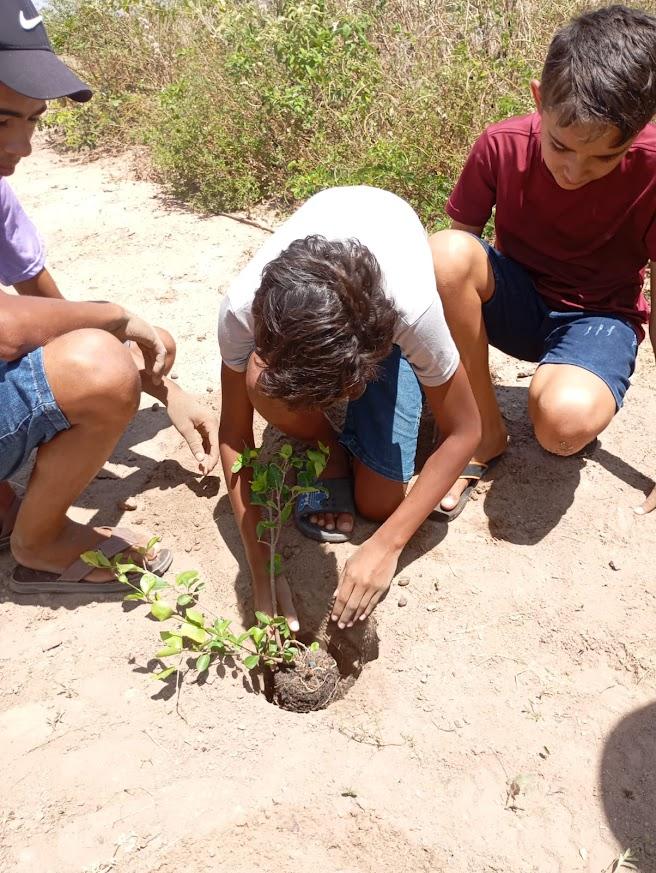 A atividade contou com a participação dos adolescentes do Núcleo de Cidadania dos Adolescentes (NUCA), que realizaram o plantio com engajamento e responsabilidade ambiental.